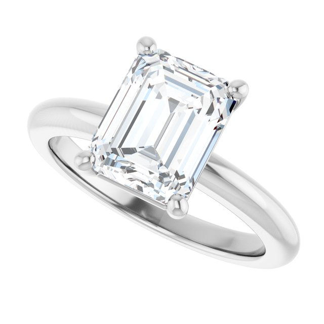 14K White 2.85 Ct Emerald Solitaire Engagement Ring Standard Shank